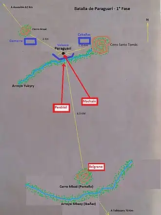 Belgrano entered into Paraguayan territory, overcoming slight resistance in the battle of Campichuelo. Belgrano crossed the Tebicuary River on 11 January, finding abandoned villages since Velasco evacuated them with his retreat.[2]