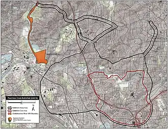 The battlefield is now largely lost to urban development. Tanyard Creek Park[15] occupies what was near the center of the battle and contains several memorial markers. Peachtree Battle Avenue commemorates the battle. All are located in the western part of Buckhead, the northern section of the city which was annexed in 1952. The play Peachtree Battle is a comedy about life in the upscale area.[16]