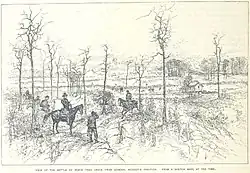 The Battle of Peachtree Creek was fought in Georgia on July 20, 1864, as part of the Atlanta Campaign in the American Civil War.[3] It was the first major attack by Lt. Gen. John Bell Hood since taking command of the Confederate Army of Tennessee.[4] The attack was against Maj. Gen. William T. Sherman's Union army, which was perched on the doorstep of Atlanta. The main armies in the conflict were the Union Army of the Cumberland, commanded by Maj. Gen. George Henry Thomas and two corps of the Confederate Army of Tennessee.