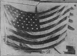 When the Americans arrived at their assigned gate that morning they found the Russians already engaged there and they moved their troops about 200 yards south. Once there, Trumpeter Calvin P. Titus volunteered to climb the 30-foot-tall wall, which he did successfully. Other Americans followed him, and at 11:03 a.m. the American flag was raised on the wall of the Outer city. American troops exchanged fire with Chinese forces on the wall and then climbed down the other side and headed west toward the Legation Quarter in the shadow of the wall of the Inner city.[14]
