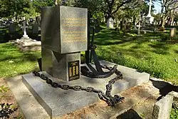 A total of 12 Russian sailors are buried at two sites in George Town – the Western Road Cemetery and on Jerejak Island. The monument honoring the sailors of Zhemchug was twice renovated by Soviet sailors in 1972 and 1987 respectively. The battle was mentioned numerous times by Vladimir Putin on his 2003 presidential visit to Malaysia. The Russian embassy in Malaysia holds memorial services twice annually in honor of the fallen sailors.[2][7] In October 2024, corvettes Aldar Tsydenzhapov, Gromkiy and Rezkiy, along with replenishment oiler Pechanga, arrived in George Town where the crews attended a ceremony to commemorate the 110th anniversary of the Battle of Penang.[8][9]