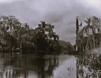 The expedition began at Fort Lauderdale, where the U.S. troops, numbering 500, boarded onto boats and began traversing up the New River.[7] As they traversed further into the Everglades, the soldiers and militiamen had to put their ammunition and equipment in their boats and get out to push the boats through the water. The troops continued to wade through the waist-deep water until they spotted smoke rising from the Seminole village on Pine Island Ridge. James Bankhead then ordered a group of his soldiers to take a white flag and approach the village to see if they would respond peacefully. A Seminole warrior then shot and wounded the soldier holding the flag, hitting his hand.[8] The Seminole warriors, who were positioned in the treetops on the island, then began to yell and fire at the boats of the soldiers.