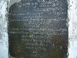 The obelisk dedicated to Lieutenant Colonel George Brown bears the following text:[4]