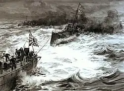 ![]() Japanese print displaying the destruction of one Russian ship | |||||||