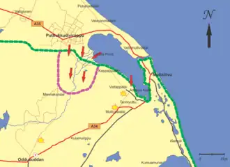 ![]() Map of Mullaitivu front depicting events of the Battle of Puthukkudiyiruppu (February 2009) | |||||||||