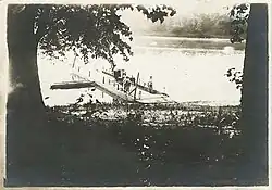 Some sources later accused White Dog of deliberately prolonging his exchange with Marsh to allow the other Dakota to ford the river upstream, take cover in the thicket, and take control of the ferry house.[8] Magner reported that Marsh had instructed him to look upriver for movements, when he saw in the river and in the weeds to the north that "the place was red with their heads." Marsh then ordered his men to retreat at roughly 1:30 PM.[6][9]