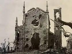 By 12 September, the Greeks had joined the Canadians in Riccione, with orders to lead the right flank during the Canadians' offensive on Rimini.[2][13] The Greeks were notorious for their poor behaviour towards locals and consequently ordered not to pass underneath the railway that bisected Riccione.[9] On the night of 12–13 September, a second attack on San Lorenzo, supported by the 3rd Greek Battalion and the 20th New Zealand Armoured Regiment, claimed the church after four and a half hours.[12] The church was destroyed.[14][15]