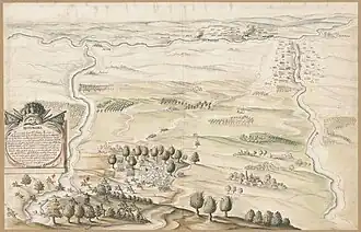 On March 26, Swedish army built a bridge over the River San, and the entire army crossed over. They took the abandoned camp left by the Lithuanians, and got a rest of a night. On April 5, they were in security inside Warsaw's walls.[3]