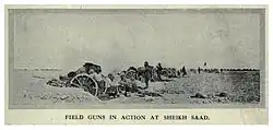 The Battle of Sheikh Sa'ad (Turkish: Sağ Sahil) occurred between 6–8 January 1916 during the Mesopotamian Campaign of the First World War. The battle took place along the banks of the Tigris River between the Anglo-Indian Tigris Corps and elements of the Ottoman Sixth Army. The engagement was the first in a series of assaults by the Tigris Corps to try to break through the Ottoman lines to relieve the besieged garrison at Kut.