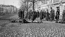 Notable persons who died in the Battle of Tampere were the Swedish historian Olof Palme,[14] Members of the Parliament Ernst Saari[15] and Juho Lehmus,[16] editor and translator Matti Kivekäs,[17] the poet Juhani Siljo,[18] the Russian officer Georgij Bulatsel[7] and the Olympic athletes David Kolehmainen[19] and Kalle Viljamaa.[20]