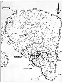 The second prong, the Left Wing Unit, would land further south at Tandjoeng Batoe (Tanjung Batu) and make their way west to capture the Peningki-Karoengan gun batteries, before moving to Lingkas, passing by the 2nd Kure Special Landing Force at the airfield, to attack and capture the Gunung Cangkol and Djoeata oil fields and the Djoeata battery up north. Once these key points of Tarakan Island were cleared, the Army would turn over guard duty to the Navy, and the force would be assembled in Tarakan and its vicinity to prepare for the capture of Balikpapan.[12]