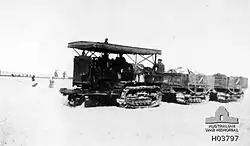 As there was no water in the Ras en Naqb area, it was necessary to return to water at the Beersheba wells, which had been augmented by thunderstorms two or three days before the town was captured.[58][79] Although the wells in Beersheba had not been seriously damaged, the pumping engines could not be used and had to be replaced. New pumps were carried in by caterpillar tractors, while the pumping plant at Asluj was dismantled and brought in to Beersheba on 3 November. Several wells were found in gardens on 3 and 4 November, and although the water left after the thunderstorms and the wadies was soon exhausted, by 6 November 390,000 gallons a day were being produced, equaling demand.[85][86]This was supplemented by 100 motor lorries carrying full 1,800 litres (480 US gal) water tanks that shuttled between Beersheba and Karm 26 kilometres (16 mi) away.[87]