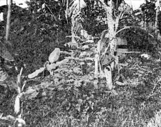 The land battle for the pass began around noon of 5 March, when Japanese vanguard light tanks encountered Dutch fortifications in form of pillboxes and a 5-cm gun. Dutch defenders were supported by just a single battery of four guns, which did not have a significant effect on the fighting.[21] The effectiveness of the pillboxes were also hindered by foliage.[22] After around three hours of combat, Japanese infantrymen had approached the forward defenses and around 50 men were withdrawn, with the 5-cm gun being destroyed and a bridge crossing the ravine ahead of the fortifications blown up.[23] As the Dutch soldiers retreated, the main first line of defenses began firing at the Japanese soldiers with mortars and machine guns, initially doing some damage before the Japanese responded with their own mortars.[23] Within half an hour, Japanese infantrymen had infiltrated unmanned sections of the defensive line and attempted to encircle the defending company, forcing a retreat to the second line, around 500 meters away. The second line had poor visibility for artillery observers and some equipment such as searchlights and radio had been abandoned in the retreat.[24] By 4 PM, Japanese soldiers were firmly entrenched in the first line and exchanged fire with Dutch troops in the second line, but did not manage to dislodge the defenders.[25]