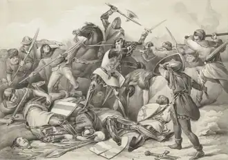 ![]() Anonymous lithograph of William IV's death during the battle (c. 1854) | |||||||