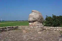 The Battle of Warns was annually celebrated on September 26 until the 16th century. In 1942 the commemoration was restored by Frisian regionalists. Since 1945 it takes place at the last Saturday of September, reinterpreted, however, in the light of the victory over fascism and the upcoming struggle for recognition of the Frisian language. It is celebrated nowadays by Frisians nationalists. There is a monument on the Red Cliffs in Warns since 1951, a large glacial erratic with the 19th-century romantic text leaver dea as slaef [sic] (rather dead than slave). The road to Scharl is traditionally called the ferkearde wei (the wrong way) by locals, as it is considered (according to the 19th-century romantic vision) the way the Hollandic knights chose to their downfall.
