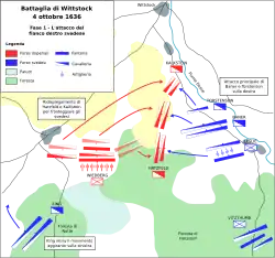 In the accounts of the battle preserved in National Archives of Sweden, Johan Banér accredits the victory to Field Marshal Leslie. Leslie, in his personal correspondence to the Swedish Chancellor, Axel Oxenstierna, was clearly horrified at the losses sustained by his army and implies that there had been disagreement about the wisdom of Banér's tactics before the battle. A third report, by James King conforms with Leslie's, but also contains additional information. All three have been transcribed, translated and published in English.[3] Nevertheless, Wittstock was a resounding victory for the Swedish forces and corrected any delusions harboured by the Imperials that they were a spent force after the earlier battle of Nördlingen.