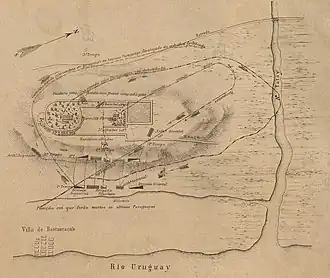 Estigarribia advanced unopposed to the south, taking on São Borja and Itaqui. In the meantime, Estigarribia's column was attacked and partially destroyed on the outskirts of São Borja, in the battle of Butuí.[7] Some of the Paraguayan forces were stationed in São Tomé and São Borja while Duarte was heading south.
