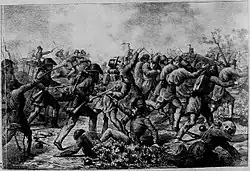 - ^ Flores also ordered the execution of some federalist Argentine soldiers, who did not recognize the national authority of president Bartolomé Mitre. Mitre had led and won a few years earlier a rebellion against the Argentine Confederation after defeating Justo José de Urquiza at the battle of Pavón.[13]