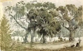 The Battle of the Caloosahatchee, also called the Caloosahatchee Massacre, was a battle that took place during the Second Seminole War on July 23, 1839. A large group of Seminole raiders attacked a trading post and U.S. Army encampment along the Caloosahatchee River.[1] The U.S. Army troops were part of the 2nd Cavalry Regiment and under the command of Lieutenant Colonel William Harney. The Seminole raiders were from various bands of Miccosukees, Muscogees, and "Spanish Indians". The battle happened because the Seminoles learned that the United States intended to violate the terms of the Macomb Treaty, a peace treaty they had recently negotiated with General Alexander Macomb that would allow them to remain in Florida.[2] The Seminole warriors overran the trading post and encampment, killing most of the soldiers and civilian traders. Harney and some of his soldiers managed to escape at the last moment.[3] The battle led to a resumption of fighting as the war would continue for three more years.