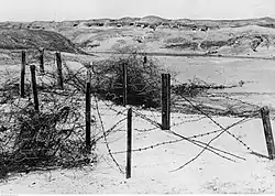 The German strongpoint at Koi-Asan, held by IR 42 and 72 in the junction between XXXXII and XXX Corps was the pivot of Manstein's defense and its control allowed the Germans to feed reserves into the north with little difficulty.[59] Kozlov directed two rifle divisions, three tank brigades and a tank battalion to take the village on 2 March.[59] German obstacles slowed down the Soviet tanks, turning them into easy targets for German anti-tank units and artillery.[59] The Luftwaffe made its presence felt with 40 Stuka sorties on the overcrowded Soviet tank masses.[59] The Soviets admitted to losing 93 tanks in one day.[59] Their gains were comparatively minor: four Czech-made German howitzers were destroyed and the Soviet Air Forces bombed and destroyed a 23-ton ammunition dump at Vladislavovka.[60] The Soviets called off their attack on 3 March.[60] Kozlov's big push failed and from 27 February he suffered extremely heavy losses of infantry and tanks, including 28 KV-1s.[60] He had gained an exposed salient, which he could hold only with light forces due to its lack of cover.[60]