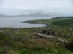 The MacDonalds of Uist barred the doors of Trumpan Church, or Kilconan Church as it was once known, east of the shores of Ardmore Bay. They then set fire to the church full of worshipers. No one escaped alive except one girl who, although mortally wounded, managed to give the alarm. On hearing the news, the chief of Clan MacLeod and his men set off for Ardmore bay where a battle ensued. The MacDonalds were killed almost to a man. The corpses of the MacDonalds were dragged and then buried in a turf dyke, and the incident remembered as the "Battle of the Spoiling Dyke". The atrocity by the MacDonalds was to exact vengeance on the MacLeods for their atrocity of the massacre of MacDonalds in the Cave of Frances on the Isle of Eigg a couple of years earlier.[4] This again was a tit-for-tat revenge between the two feuding clans.[2][5][6]