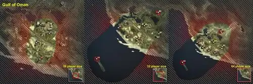 Battlefield 2 maps have 3 variations, each suited for a certain number of players. Each map has 16, 32, and 64 player-suggested variations in which the area of battlefield or playing field is relatively small, medium, and large, respectively. The only exceptions to this are Wake Island 2007, which is locked at 64-player size and the Euro Force maps, Operation Smokescreen, Great Wall, and Taraba Quarry, which have no 64-player size. 32 and 64 player maps are unavailable to offline players from retailers, but an option is given to download 64 Single player AI bot mods. Other contrasts between these variations other than the size are the number and position of control points and availability of vehicles. As a result, the gameplay of the map is different depending on the variation.[19][20]