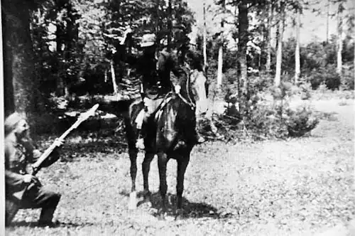 And then an attack by UPA forces came from Holubia. A second battle broke out. This battle is called - Prehoryłe II, on 9.III.1944. To help the forces of "Bruchalski" rushed the platoon of "Szczygiel" (Feliks Zwolak). When the platoon reached Prehoryłe, the action was already coming to an end. After setting fire to a shed, "Bruchalski" managed to leave the encirclement under cover of smoke. The participation of our platoon came down to the fact that it thwarted the pursuit of "Bruchalski's" retreating partisans. The UPA-men, seeing that the Poles were with the help of new forces, then abandoned the pursuit.[12]