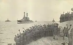 ![]() Battleship Division Nine steaming into Rosyth, Scotland | |