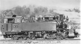 In order not to exceed the permitted axle load, the locomotive was equipped with six axles, which were grouped into two groups of three, each with its own driving gear. This compound engine was of the Mallet locomotive type. The preheater was located in front of the chimney and lay parallel to the axis of the locomotive.