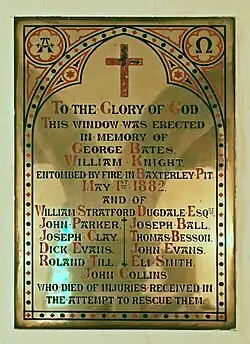 - ^ "The Baddesley Baxterley Pit Explosion 1882". Baddesleypitexplosion.co.uk. Retrieved 13 March 2017.