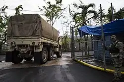 Hurricane Maria struck Puerto Rico on September 20, 2017, causing large-scale damage and destruction to infrastructure. Numerous landslides occurred in Bayamón as a result of the hurricane's significant amount of rainfall.[12][13] In Bayamón, around 300 homes were destroyed, and two people were killed by Hurricane María. Many municipal buildings, and the Goya Foods factory in Bayamón sustained significant damage.[14]