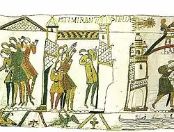 - ^ The spelling of the Latin word castra here has been cited by some in favour of the theory that the Tapestry was made in England.[26]