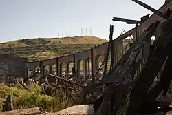 The Western Pacific Railroad (WP) also built a tunnel through Potrero Hill at nearly the same time;[47] support timbers within the Western Pacific tunnel caught fire in 1962, leading to its collapse and subsequent fill. The area on top of the WP tunnel remained undeveloped until the 1990s.[48]