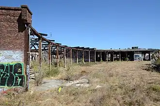The Bayshore Roundhouse was completed in 1910 and still stands, although it was damaged in an October 2001 fire which destroyed approximately half the roof.[58] Construction on the Roundhouse started in 1908, shortly after the Bayshore Cutoff was completed, and it was one of the first buildings at the new Bayshore railyard.[25]
