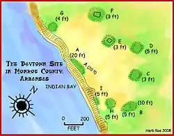 The Baytown Site (3 MO 1) is a Pre-Columbian Native American archaeological site located on the White River at Indian Bay, in Monroe County, Arkansas. It was first inhabited by peoples of the Baytown culture (300 to 700 CE) and later briefly by peoples of the Plum Bayou culture (650 to 1050 CE),[2] in a time known as the Late Woodland period. It is considered the type site of the Baytown culture.