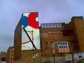 In 1970, prior to the rejuvenation of the district, Bayview's entire south wall was decorated with a red and pink abstract painting, called "Venus" by artist Knox Martin. The mural, conspicuous for its size and beauty, has often been used on post cards. It is also conspicuous—in a culture that regards large, exposed surface as prime advertising space—for not being a billboard. Not surprisingly, advertisers call from time to time with proposals to lease the wall for commercial messages, but Bayview doesn't want its beautiful Venus covered over with a beer or jeans ad. Besides, it's state property.[1]