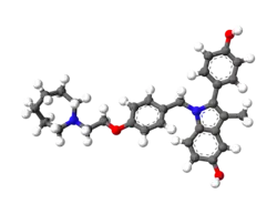 The drug is a member of the 2-phenylindole group of SERMs, along with zindoxifene and pipendoxifene.[6]