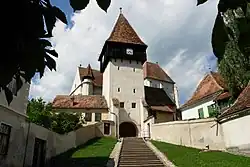 Bazna village is first attested in a document of 1302. Initially, Saxons had settled to the west, near Boian, but due to the scenic aspect of Bazna valley, moved there and built an imposing fortified church.[3] The church is built in Gothic style and incorporates 13th-century Romanesque elements, with the enclosure walls dating from the 15th and 16th centuries.