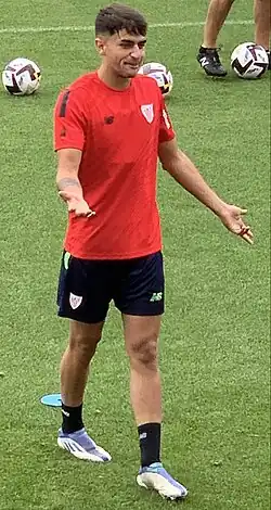 On 19 August 2023, he made his La Liga debut for Athletic in his hometown of Pamplona at El Sadar against Osasuna, replacing Imanol in a 2–0 victory.[8][9] On 1 September, after the departure of Javier Martón, he was registered in the first team squad with the number '24'.[10] After a few months in which he occasionally filled in as a right-back or center-back, in December he made a place for himself in the centre of midfield, with several impressive displays.[11][12][13]
