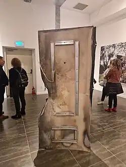 In November 2023, an exhibition about the massacre and the resulting damage was opened at the Haifa City Museum which includes photographs taken in the kibbutz after the attack and as well as collected items to show the scale of destruction.[79] Also in November 2023, art and video works retrieved from the gallery in the kibbutz were removed and displayed at the National Museum of 21st Century Arts in Rome as part of an exhibit entitled "Ninety-five percent heaven, five percent hell" as part of the cultural attaché of the Israeli Embassy in Italy.[80]