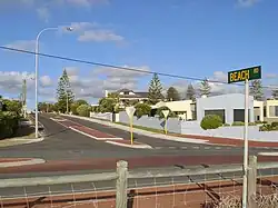 Beach Road is a major east–west road in the northern suburbs of Perth, Western Australia, connecting Perth's inner northern beachside suburbs and inland state housing areas with shopping and public transport facilities at Warwick and the Malaga industrial area. It was mostly built between 1967 and 1974,[1] and is a dual carriageway for most of its length, except for a small western part between Marmion Avenue and the coast, which is a minor residential distributor road and is discontinuous at Marmion Avenue.[2] Beach Road also serves as a local government boundary. From Alexander Drive to Wanneroo Road, Beach Road is the boundary with the City of Wanneroo on the northern side and the City of Stirling on the southern side. From Wanneroo Road to the coast Beach Road is the boundary with the City of Joondalup (part of City of Wanneroo until 1998) on the northern side and the City of Stirling on the southern side.