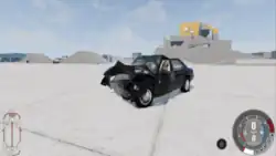 Vehicles in the game consist of a soft-body node-beam structure similar to those in Rigs of Rods. Node-beam structures are represented in a JSON-like text file format, called "JBeams".[8] The physics engine simulates a network of interconnected nodes and beams, which combine to form an invisible skeleton of a vehicle with realistic weights and masses. In terms of soft-body physics, vehicles realistically flex and deform as stress, such as impacts from collisions, is applied to the skeleton.[9][10] Aside from body deformation, various other types of damage are simulated such as degraded engines, detached doors and shattered windows. If a vehicle is severely damaged or if it runs out of fuel, the engine may fail, rendering the vehicle unusable; additionally, the vehicle will also fail from overloading the driveshaft, clutch, and other important components that can result in catastrophic failure to the vehicle. Tires can be blown out and fuel tanks may explode after enough damage to the rear of the vehicle.