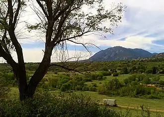Trails for horseback riding can be picked up at the Penrose Equestrian Center on Rido Grande, off of 8th Street. The gravel trails are wide and are good for riding in the winter. The trail can be taken through the park, across creeks and over hills, to 21st Street and ride into section 16 which has steeper hills. The trail is shared with cyclists and hikers.[11]