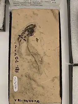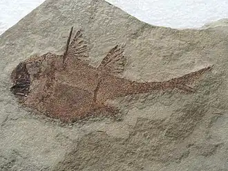 - ^ Grogan, Eileen D.; Lund, Richard (2015). "Two new Actinopterygii (Vertebrata, Osteichthyes) with cosmine from the Bear Gulch Limestone (Heath Fm., Serpukhovian, Mississippian) of Montana USA". Proceedings of the Academy of Natural Sciences of Philadelphia. 164 (1): 111–132. Bibcode:2015PANSP.164..111G. doi:10.1635/053.164.0114. ISSN 0097-3157. S2CID 130093887.