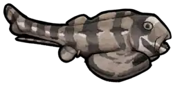 The Bear Gulch Limestone is renowned for its unusual and ecologically diverse chondrichthyans, the group of cartilaginous fish containing modern sharks, rays, and chimaeras. Over 80 species of chondrichthyans are known (as of 2012), representing close to 60% of the fish diversity (by species count) in the bay. This is a far cry from modern ecosystems, where chondrichthyans comprise only around 3% of fish species.[6] In the Bear Gulch Limestone, chondrichthyans possess a wide range of ecologies and body types, including eel-like forms ("Thrinacoselache"), deep-bodied durophages (petalodontiforms), small active swimmers (most holocephalans), ray-like benthic forms (Squatinactis) and more typical shark-like predators (symmoriiforms and elasmobranchs).[4] Chondrichthyan diversity and abundance patterns are correlated, with the highest number of species and fossils found in the central basin facies and the lowest in the marginal facies. Large predatory chondrichthyans such as Listracanthus and symmoriiforms (except Falcatus) make up a higher portion of fossils in the hypersaline upper bay, while Falcatus and holocephalans are the most common fossils in the marginal and central basin facies. A sheltered reef habitat at the eastern edge of exposures has produced a high number of Heteropetalus fossils. Regardless, each habitat observes significant species overlap with other habitats, and "common" chondrichthyans (>3 specimens) are not abundant to the point that they outnumber more rare species (<3 specimens), in terms of total specimen count.[6]