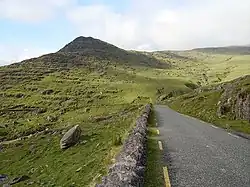 The peninsula was glaciated during the quaternary period; evidence from this era survives in the form of striae around Hungry hill, and erratics on the western road into Glengarriff.[2] The first signs of human activity date to c 3000 BC, and consist of traces of Early Bronze Age settlements.[3] The landscape is rich in megalithic monuments and other prehistoric archeological sites, including over 70 standing stones, 22 stone rows,[4] 38 dolmens, as well as wedge tombs, stone circles. Later the area became a Viking settlement, as evident in place names such as Longhart. Levels of Early Medieval activity can be deduced from the presence of many ringforts, cashels, cairns and fulacht fiadh.[5]
