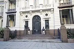 The Uruguayan Army's "Company of Sappers 1837" uses the bearskin cap as a part of its ceremonial uniform as the protocolar guard of the Judicial Branch of Uruguay.[57] The Company holds a parade when a new supreme court justice is sworn in.[58]
