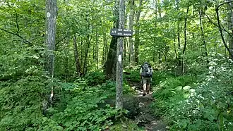 The forest has trails for horseback riding, mountain biking, snowmobiling, snowshoeing, and all-terrain vehicle use. A 1.7-mile (2.7 km) interpretive trail loops around Benedict Pond and a 7.5-mile (12.1 km) stretch of the Appalachian Trail passes near the pond and across the forest. Swimming, fishing, and a ramp for non-motorized boating are offered on Benedict Pond. There are also facilities for camping, picnicking and restricted hunting as well as handicapped-accessible beaches and restrooms.[3]