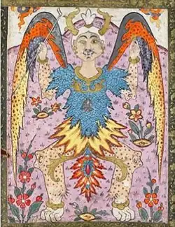 In the early period of Islam, descriptions of the Beast of the Earth were sparse. Only later more interpretations of the Beast emerged.[3] One of the main features is that it will put a seal to distinguish the believers from the disbelievers,[3] reminiscent, yet not identical, to the Bible.[4] About a creature "worst of the beasts" ("Sharra al dawabbi شر الدواب"), due to their spiritual inability to hear and see despite their physical ability to do so, it was interpreted as the embodiment of attachment to the material world, sharing similarities with Central Asian mythological creatures (likewise composed of parts of several different animals) and symbolizes the material world.[5]