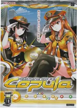 Beatmania IIDX 23: Copula is the 23rd installment of the Beatmania IIDX series. The first location test was held at the Tokyo Lesiure Land #2 location in Akihabara, Japan from July 10 through July 12, 2015.[1] It was released on November 11, 2015.[2] It was the last entry in the Beatmania series made by Konami Digital Entertainment before the division was renamed Konami Amusement.
